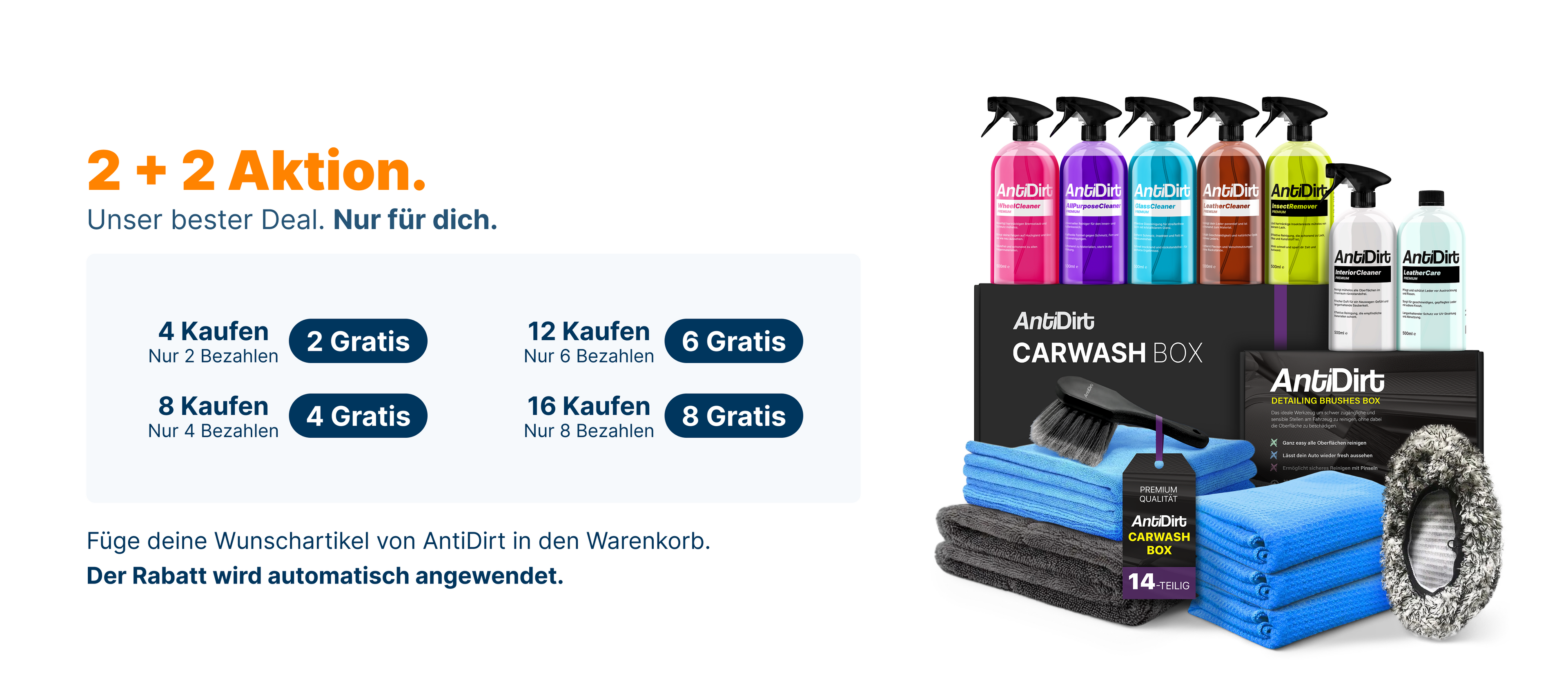 Here's how it works: Car care has to be convincing – not just in the online shop or on the shelf, but especially on your car. That's why AntiDirt gives you 100 days to test our products risk-free. No catch, no fine print.